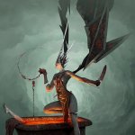I didn’t really choose to, I wanted to draw a monster, because it’s not something I do very often. (Also in this particular style, inspired by another artist.) But when I was done, I noticed a strange resemblance to someone I knew . . . quite possibly some kind of subconscious statement there that I’m a bit leery of investigating further.