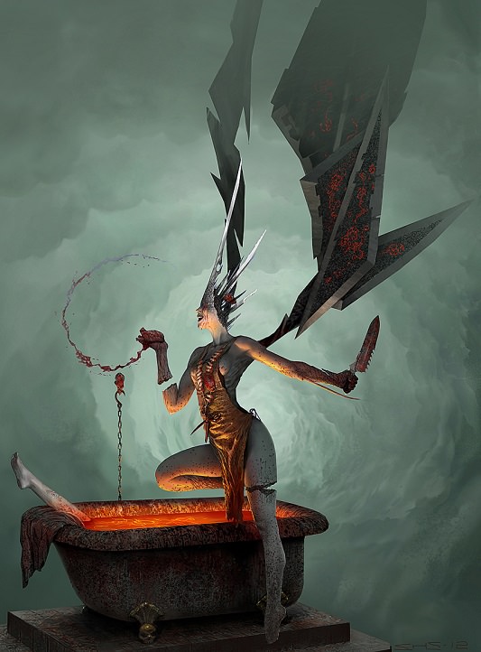 Nowadays it’s Photoshop, I used to prefer Maya, but it just takes longer to achieve similar effects. As you mentioned it can be crisper and more detailed, but it comes at a steep cost of time and effort. Photoshop to me is more responsive and interactive. 3-D of course could be used for animation, but I don’t do much of that anymore either.